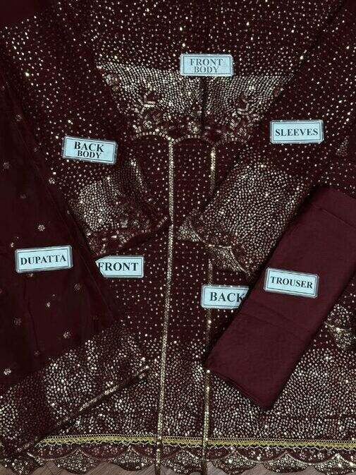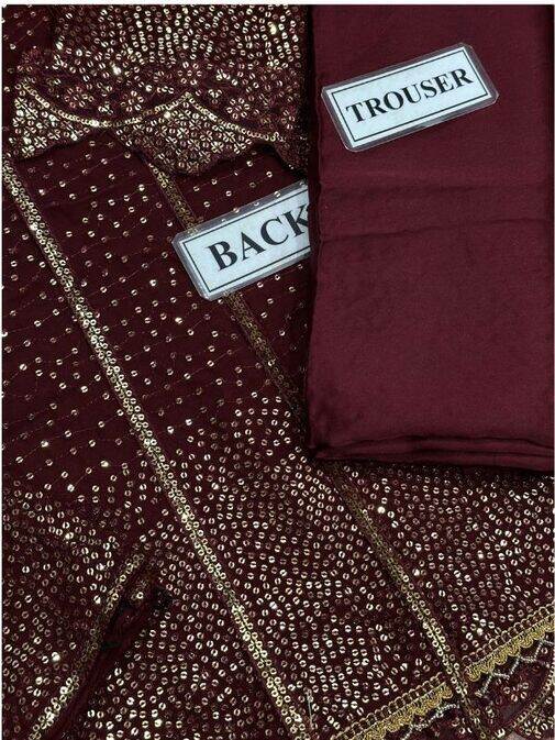 Fabric: Chiffon Frok with Dupatta Silk Trouser 3 Piece Unstitched.