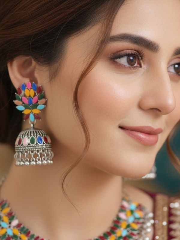 β Style: Traditional multicolour Jhumka earrings.