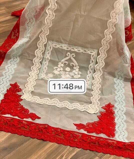 – Embroidered Khadi Net  Dupatta ready to wear with Organza Borders.