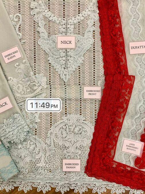 Fabric: Chikankari Lawn with Kadi Net Dupatta 3 Piece Unstitched.