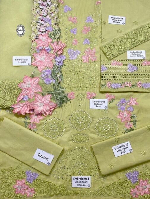Fabric: Embroidered Lawn Cotton with Organza Dupatta 3 Piece Unstitched.