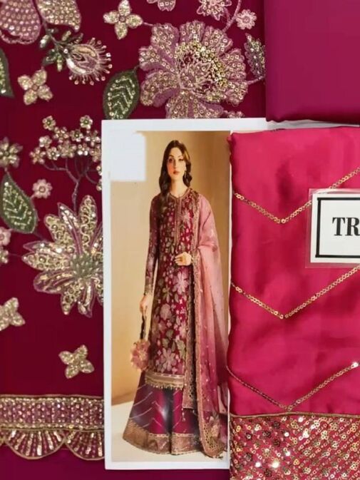 Fabric: Embroidered Chiffon Frok with Net Dupatta 3 Piece Unstitched.