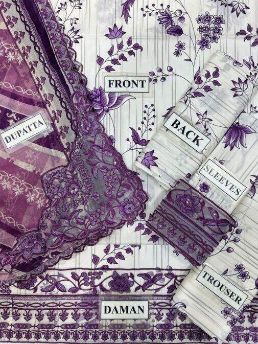 Fabric: Embroidered Lawn with Chiffon Dupatta 3 Piece Unstitched.