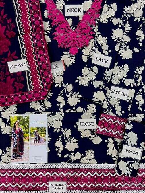Fabric: Embroidered Lawn with Chiffon Dupatta 3 Piece Unstitched.