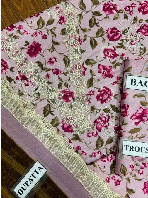 Fabric: Embroidered Lawn with Chiffon Dupatta 3 Piece Unstitched.