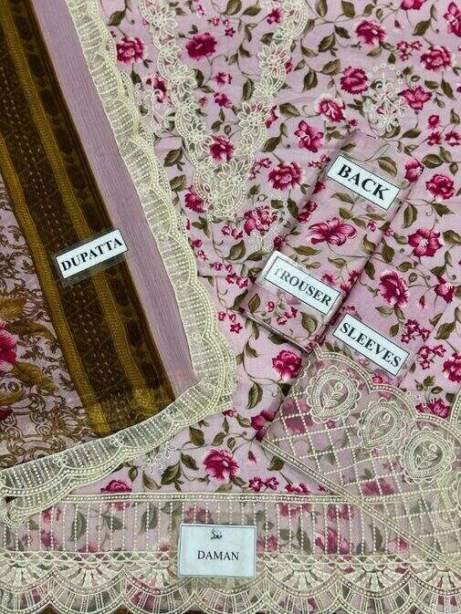 – Chiffon Printed Dupatta with 4 sides Embroidered Laced.