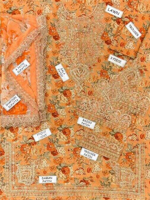 Fabric: Embroidered Lawn with Chiffon Dupatta 3 Piece Unstitched.