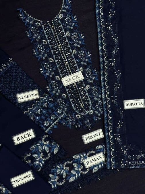 Fabric: Embordered Chiffon with Chiffon Dupatta 3 Piece Unstitched.