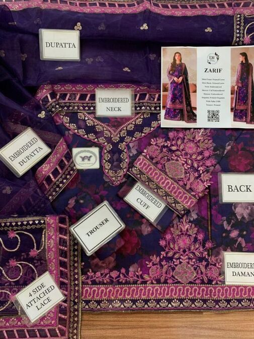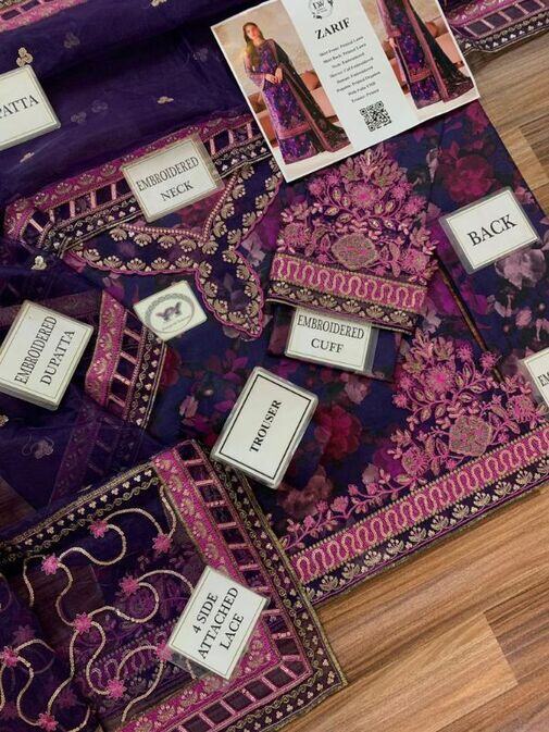 Fabric: Embroidered Luxury Lawn with Organza Dupatta 3 Piece Unstitched.